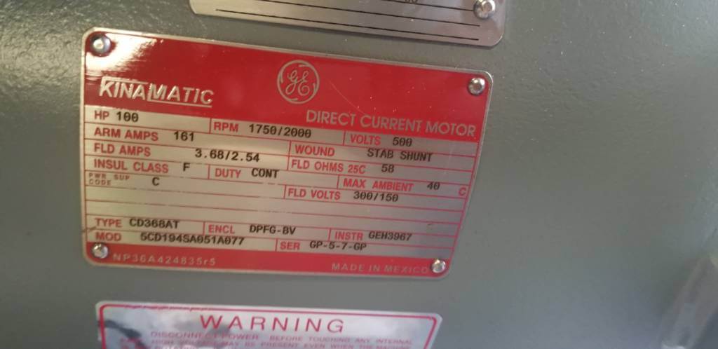 100 HP, 1750/2000 RPM, G.E., FR. CD368AT, BBDPFG-BV, 500-300/150V, NEW (2)