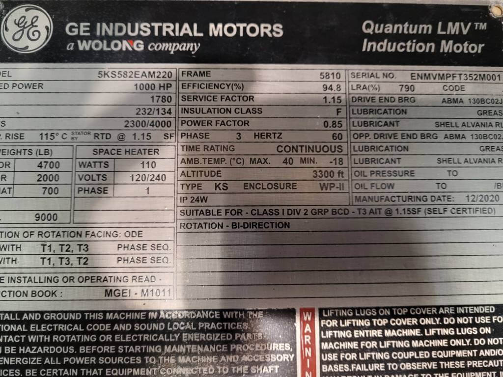 1000 HP, 1800 RPM, G.E., FRAME 5810/5811S, BBWPII, 2300/4000V NEW