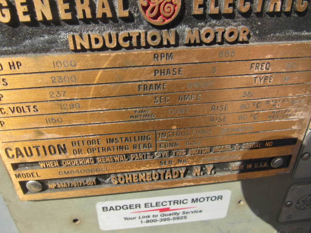 1000 HP, 900 RPM, GE, FRAME 8409Z, SBDP, 2300V, (3)