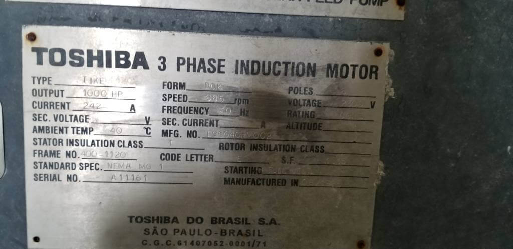 1000 HP, 900 RPM, TOSHIBA, FRAME 400-1120, BBWPI, 2300 V
