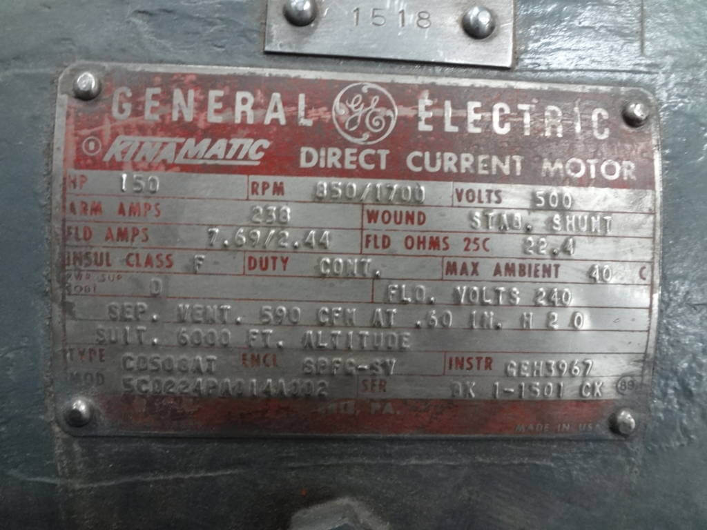 150 HP, 850/1700 RPM, GE, FRAME CD508AT, BB, SPFG-SV, 500V