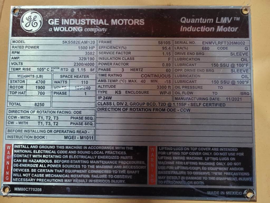 1500 HP, 3600 RPM, G.E., FRAME 5810S, SBWPII, 2300/4000V, NEW
