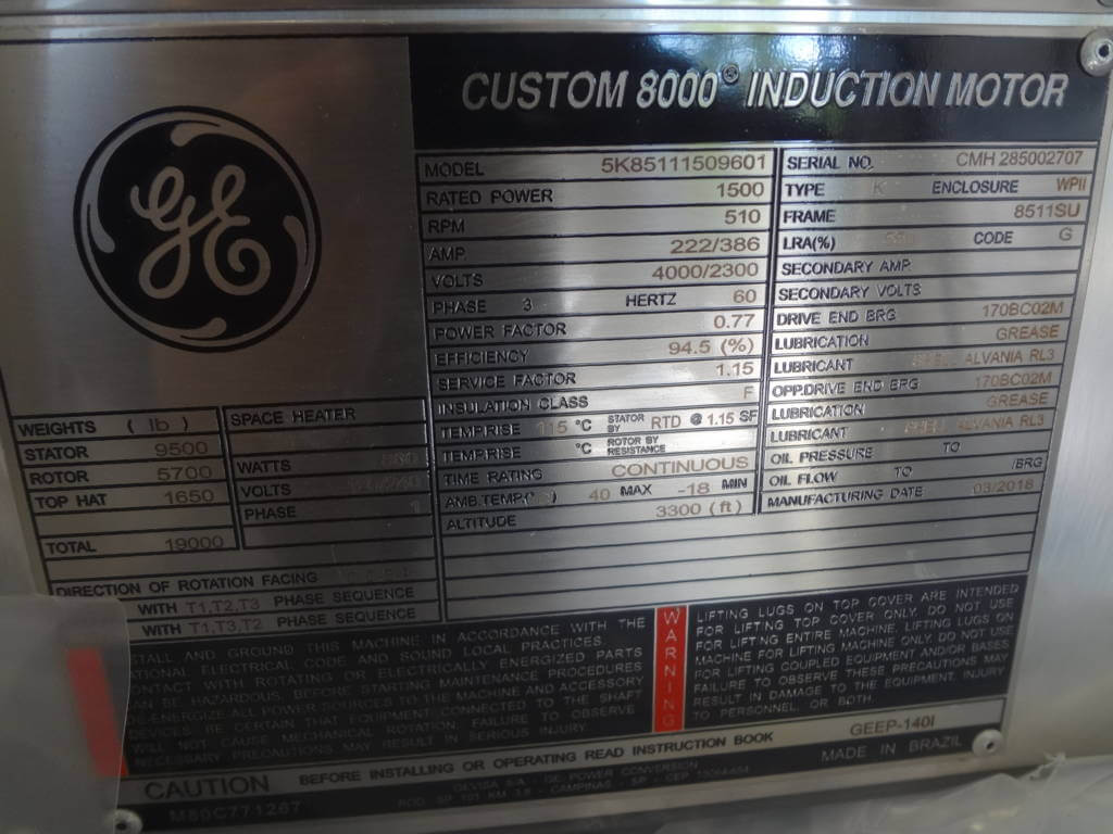 1500 HP, 514 RPM, GE, FRAME 8511SU, BBWPII, 2300/4000V, NEW