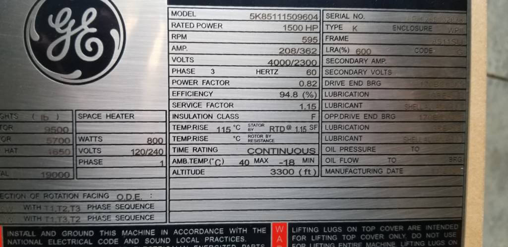 1500 HP, 600 RPM, GE, FRAME 8511SU, BBWPII, 2300/4000V, NEW
