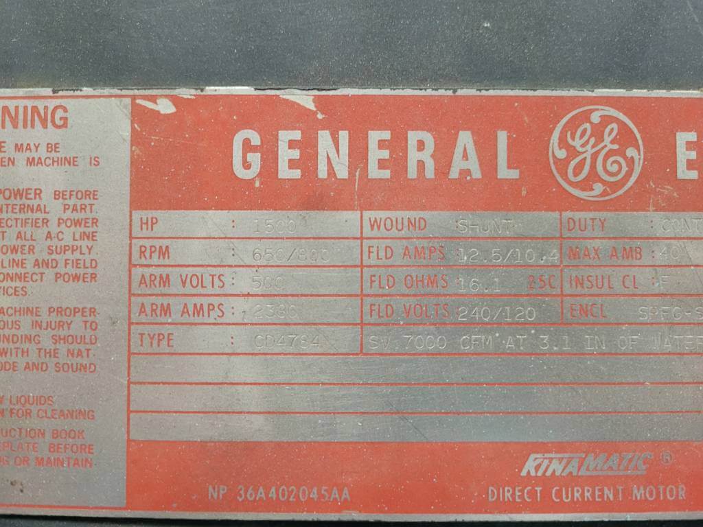 1500 HP, 650/800 RPM, G.E., FRAME CD4784, BBSPFG-SV, 500 V, (2)