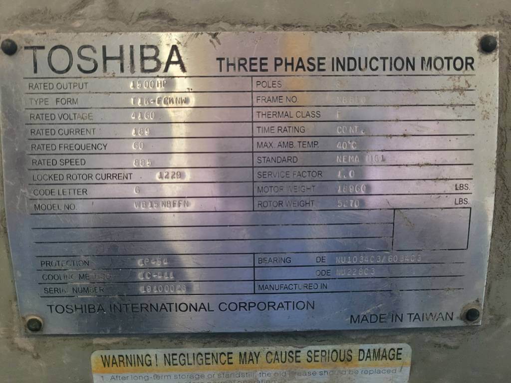 1500 HP, 900 RPM, TOSHIBA FRAME N8810, BBTEFC, 4160V, (2)