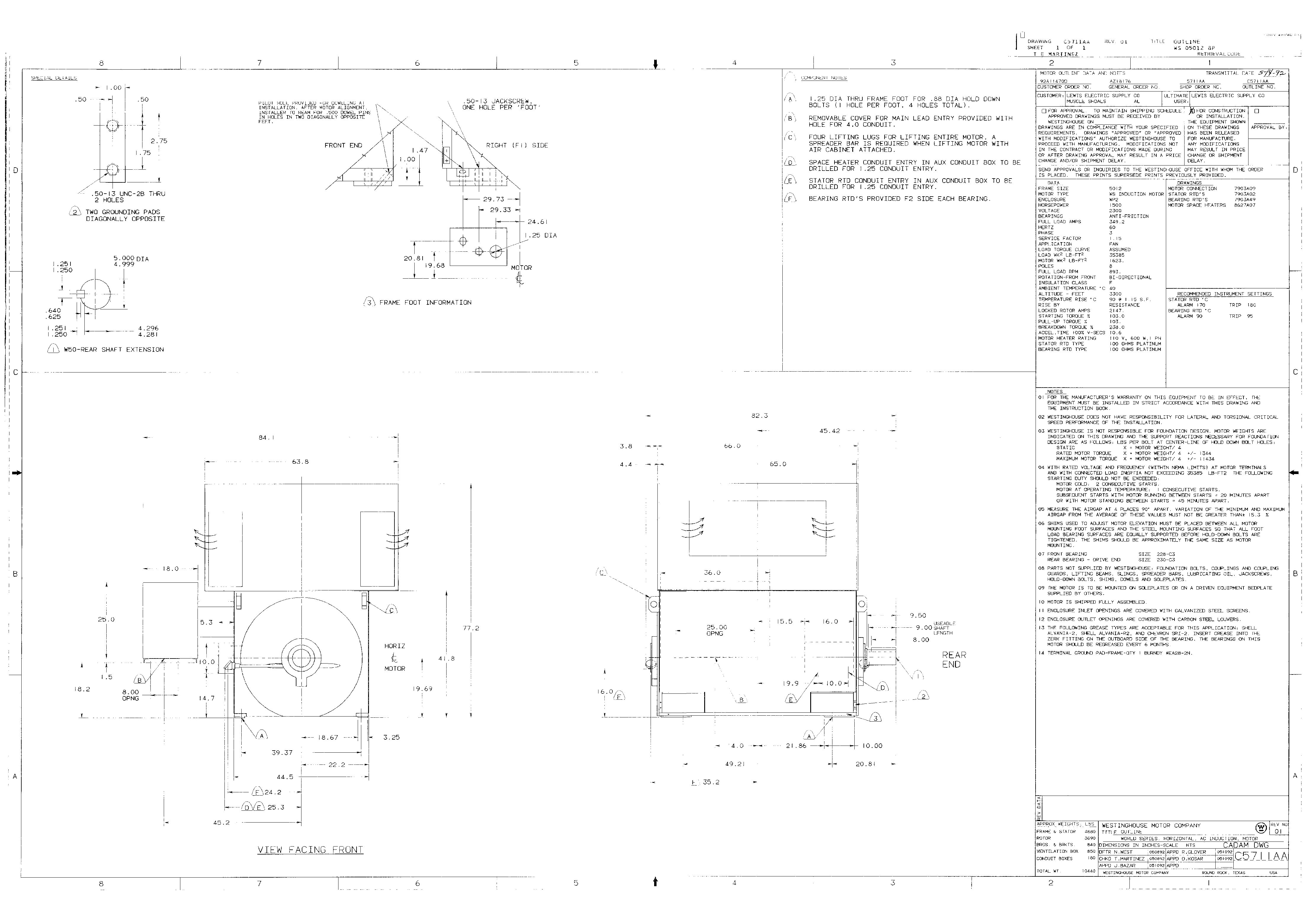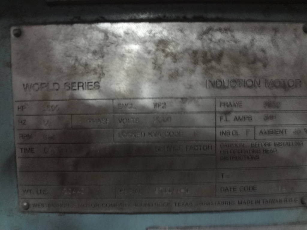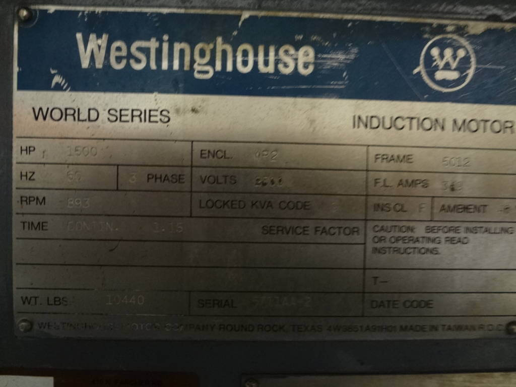 1500 HP, 900 RPM, WH, FRAME 5012, BBWPII, 2300V