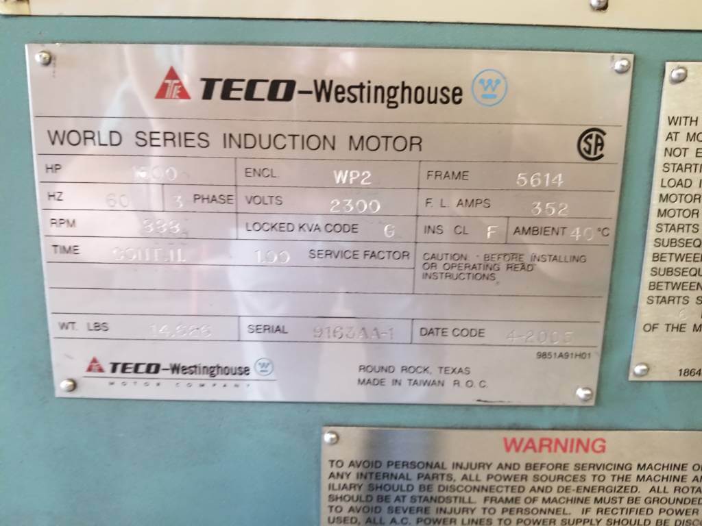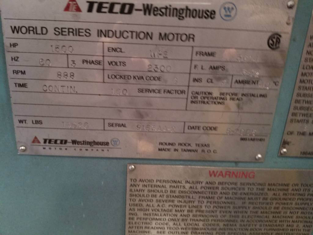 1500 HP, 900 RPM, WH, FRAME 5614, SBWPII, 2300 V, (2)