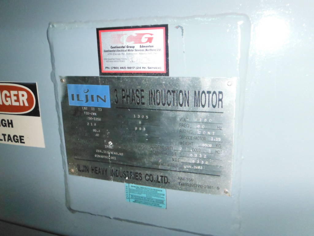 1750 HP, 900 RPM, ILJIN, FRAME 450-1250, BBWPI, 4160V