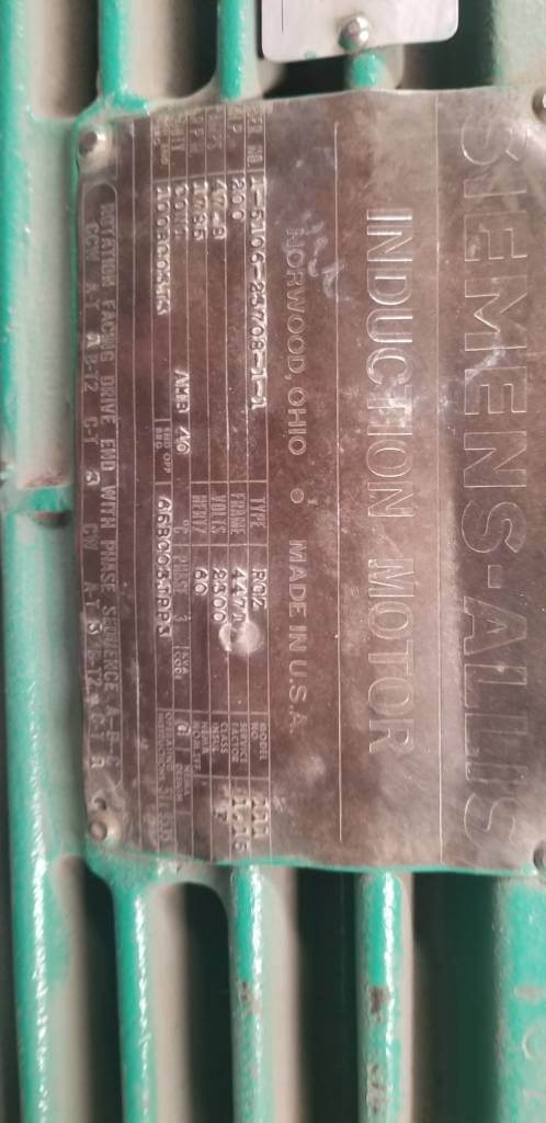 200 HP, 1800 RPM, SIEMENS, FRAME 447T, BBTEFC, 2300V