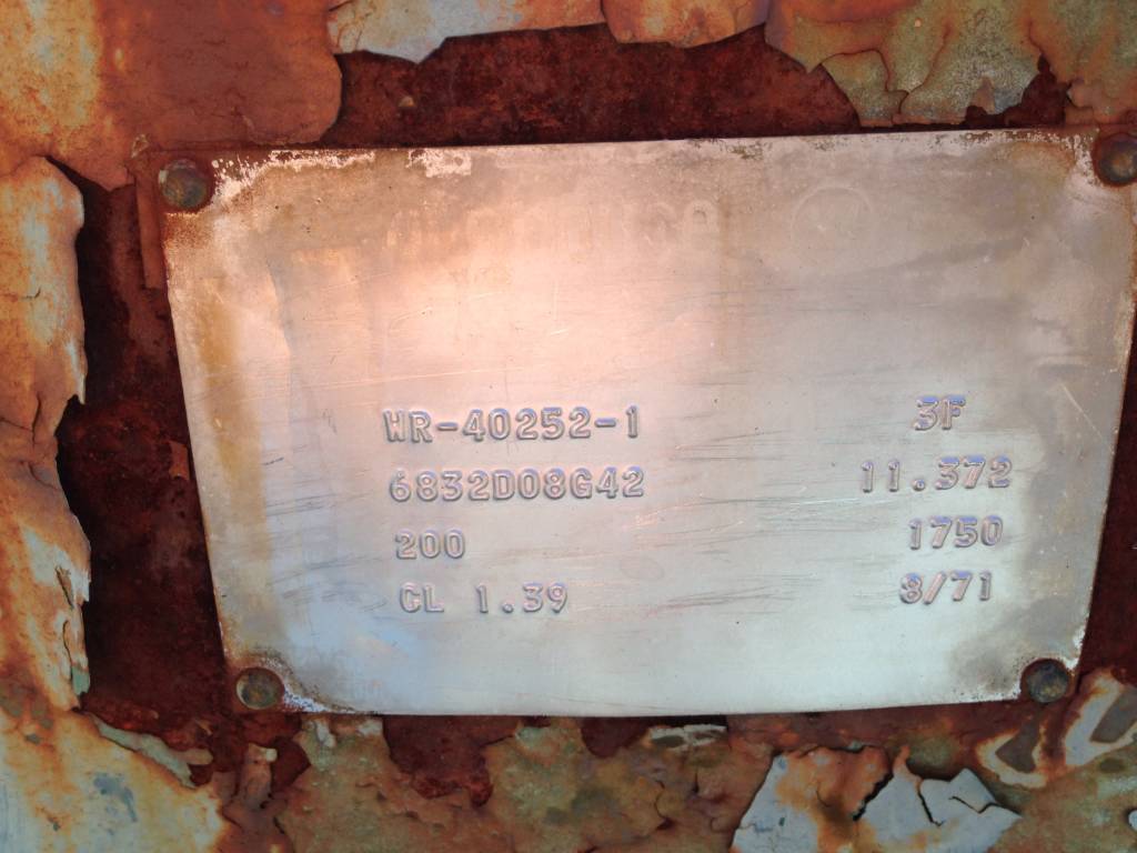 200 HP, Westinghouse, 11.372:1 ratio, 1750/154 RPM, off parallel