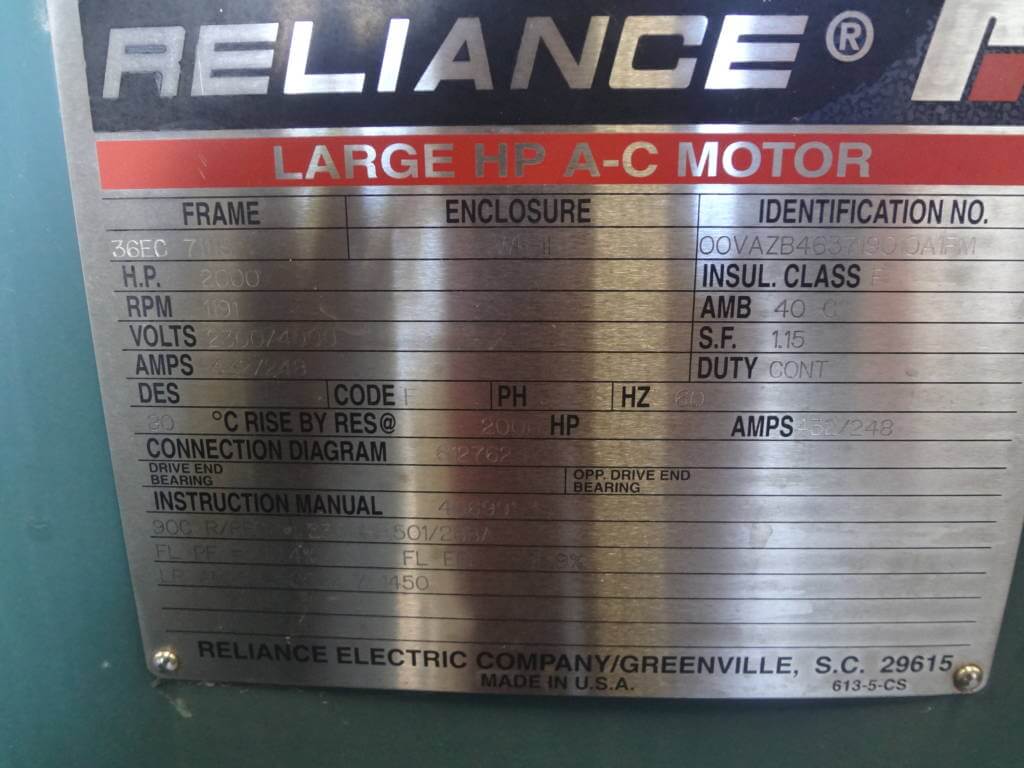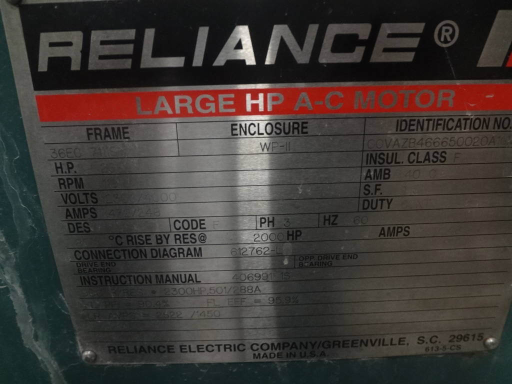 2000 HP, 1200 RPM, Reliance, FRAME 7111S, SBWPII, 2300/4000V (2)