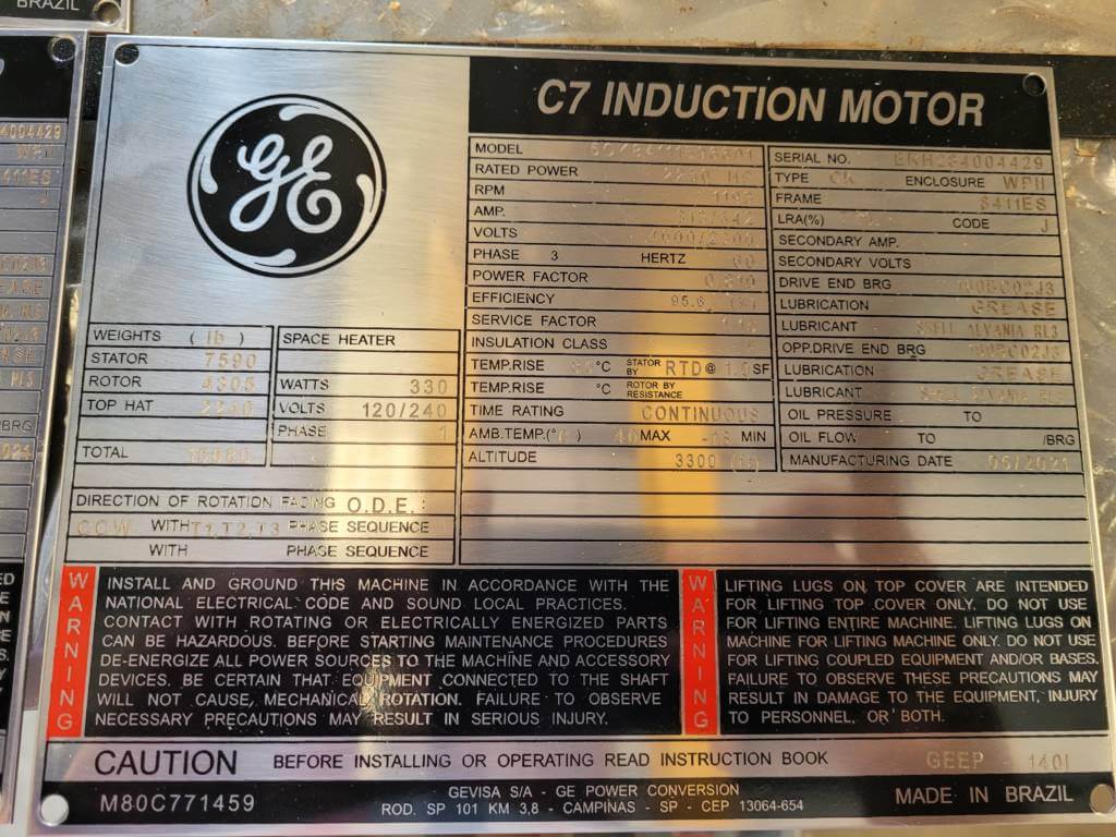 2250 HP, 1200 RPM, G.E., FRAME 8411S, BBWPII, 2300/4000V, NEW
