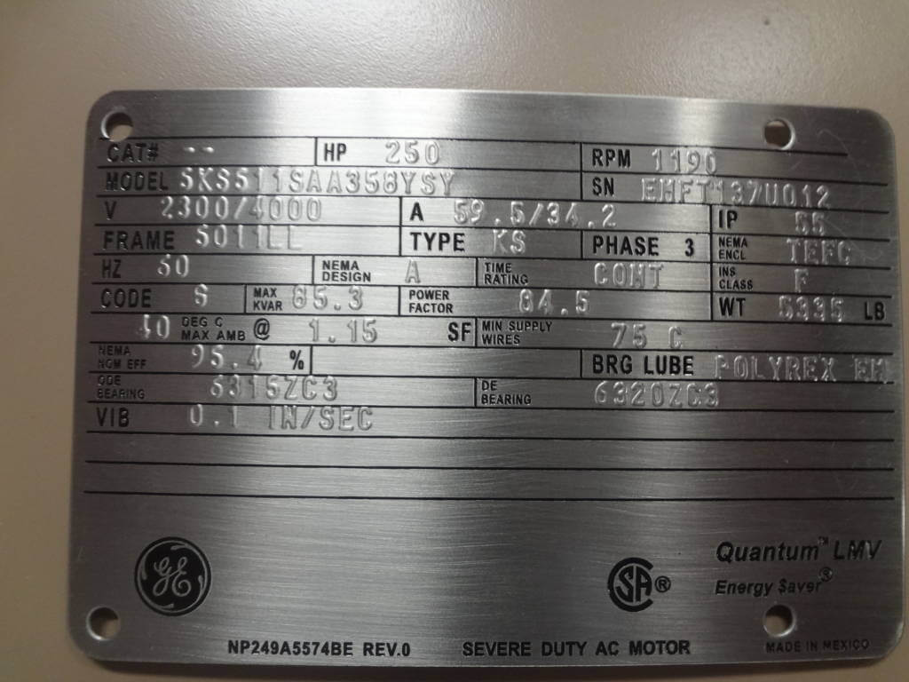 250 HP, 1200 RPM, GE, FRAME 5010/5011LL, BBTEFC, 2300/4160V, NEW, (2)