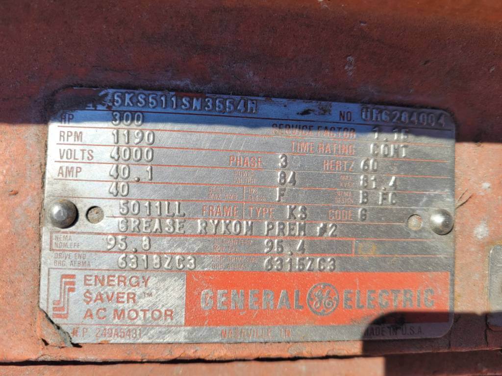 300 HP, 1200 RPM, GE, FRAME 5011LL, BBTEFC, 4000V (2) quantity