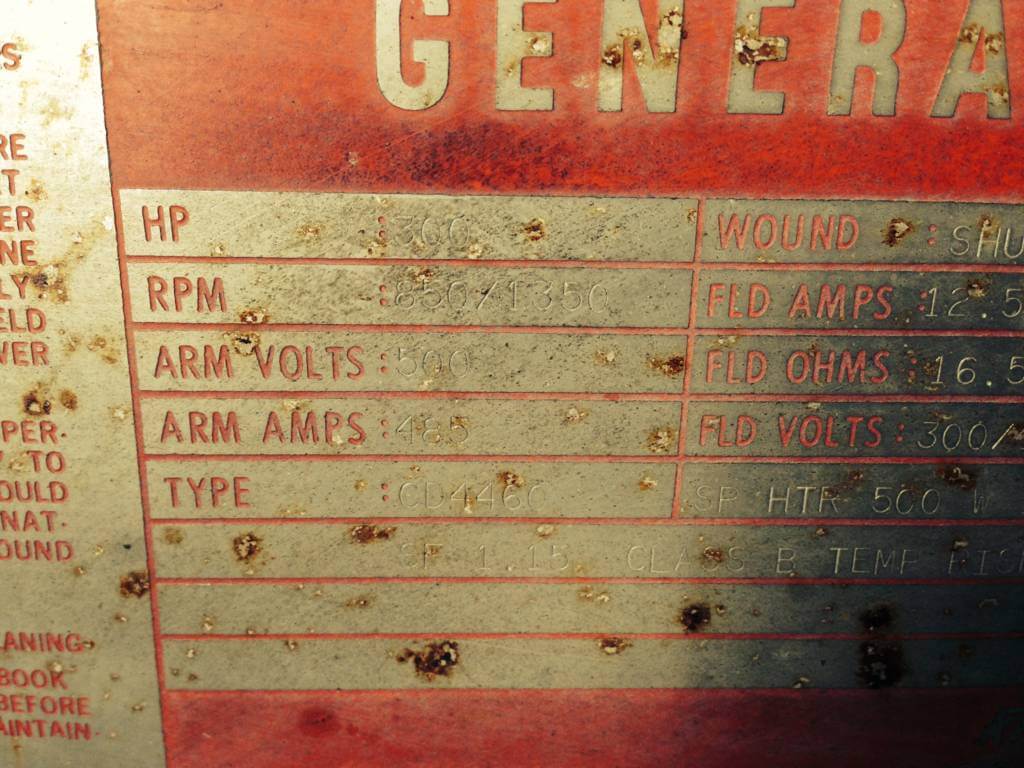 300 HP, 850/1350 RPM, GE, FRAME CD4460, BB, TEUC, 500V