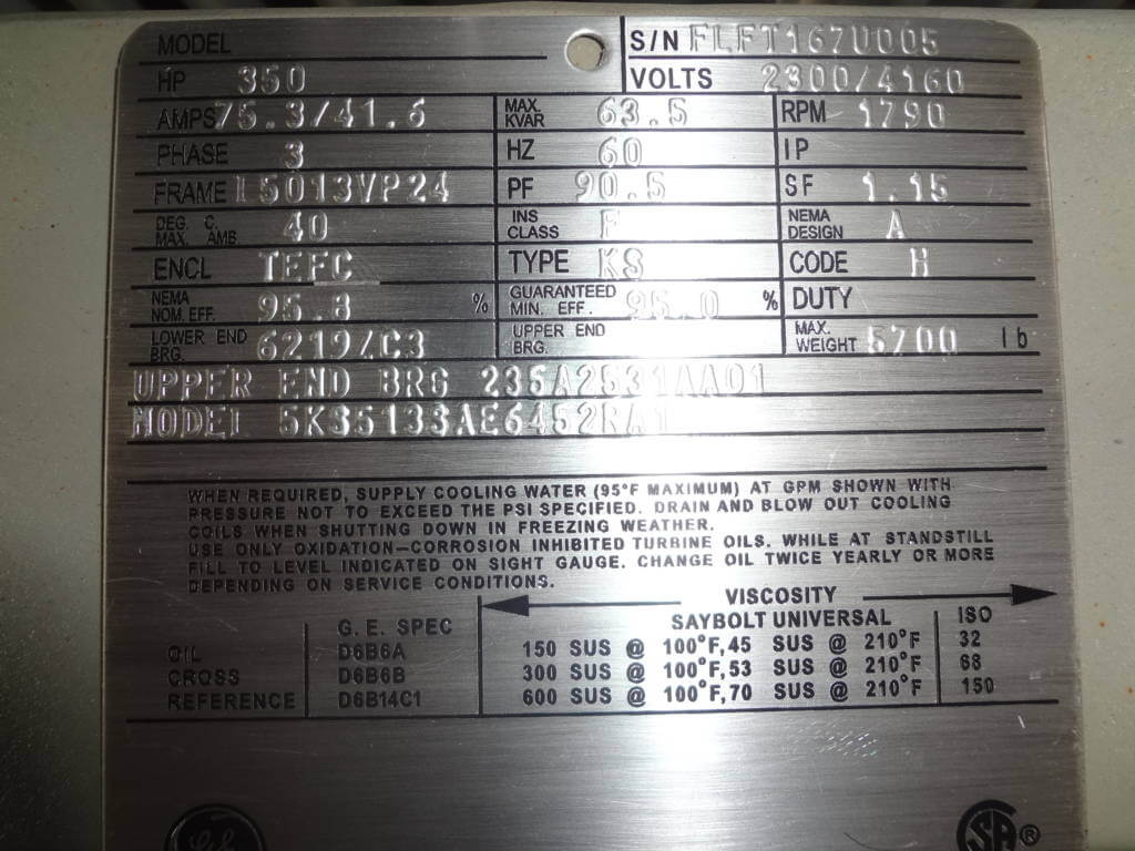 350 HP, 1800 RPM, GE, FRAME L5013VP24, BBTEFC, 2300/4160V, NEW, (2)