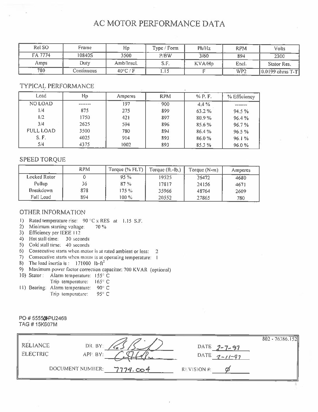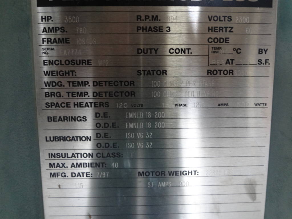 3500 HP, 900 RPM, REL, FRAME 10840S, SBWPII, 2300V