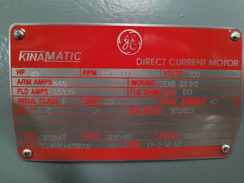 40 HP, 1750/2000 RPM, G.E., FRAME CD328AT, BB, DPFG-BV, 500V, NEW,(2)
