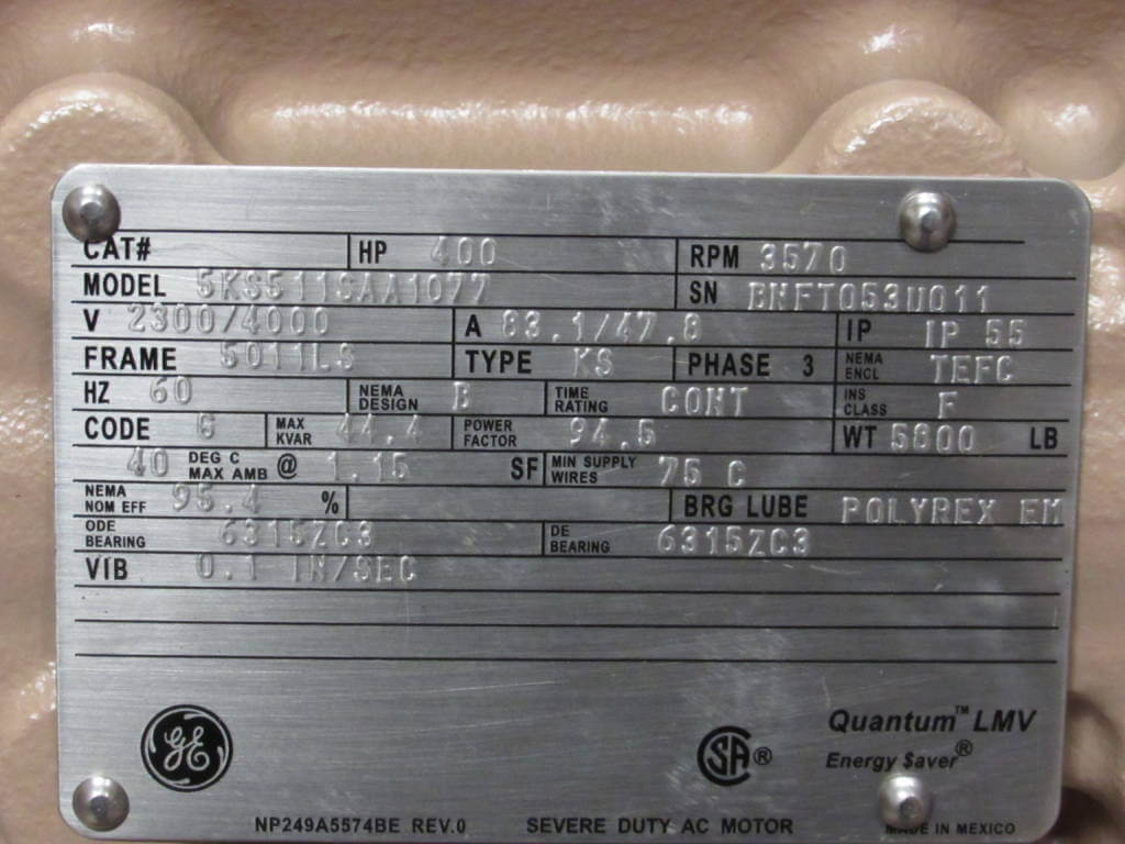 400 HP, 3600 RPM, GE, FRAME 5011LS, BBTEFC, 2300/4000 V, NEW
