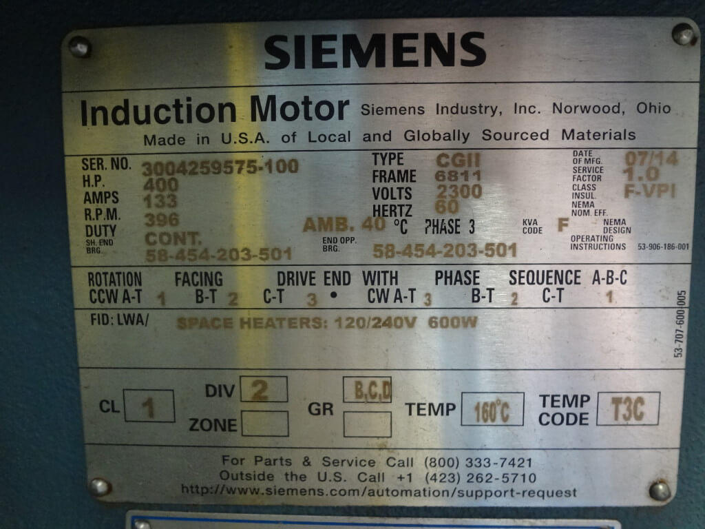 400 HP, 400 RPM, SIEMENS, FRAME 6811, SBWPII, 2300V, UNUSED