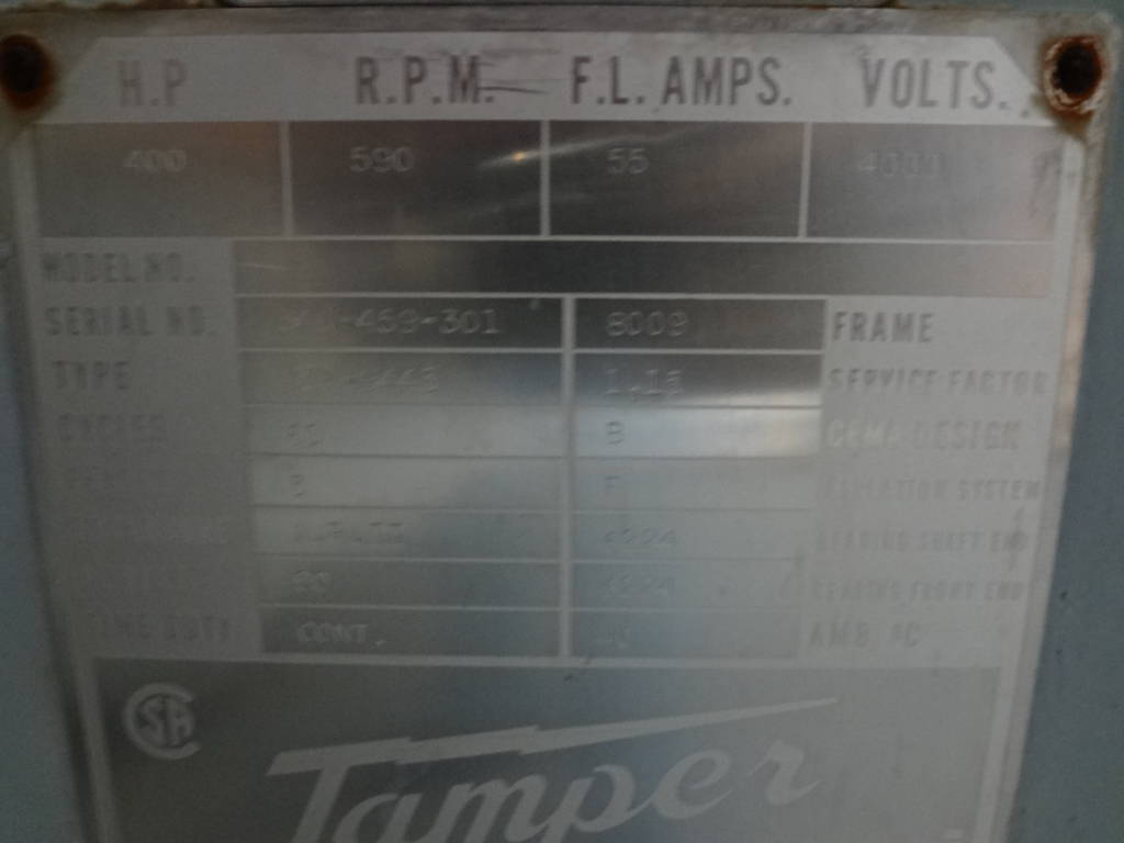 400 HP, 600 RPM, TAMPER, FRAME 8009, BBWPII, 4000V