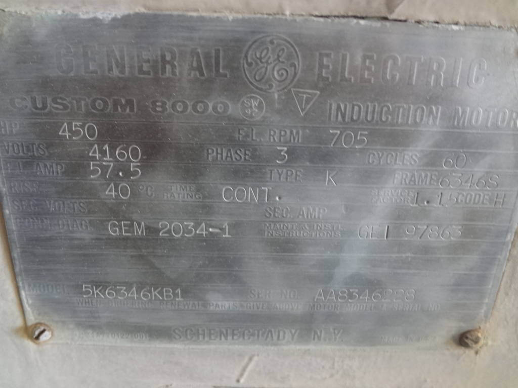 450 HP, 720 RPM, GE, FRAME 6346S, SBWPII, 2300/4160V, (3)