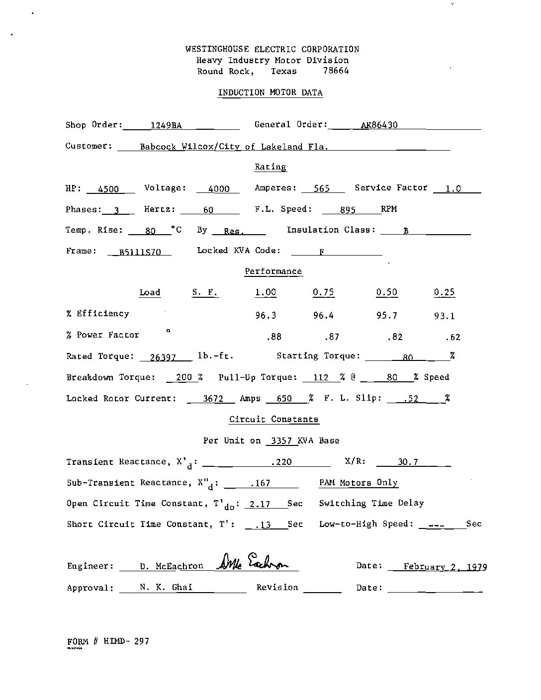 4500 HP, 900 RPM, WH, FRAME B5111S70, SBWPI, 4000V (2)