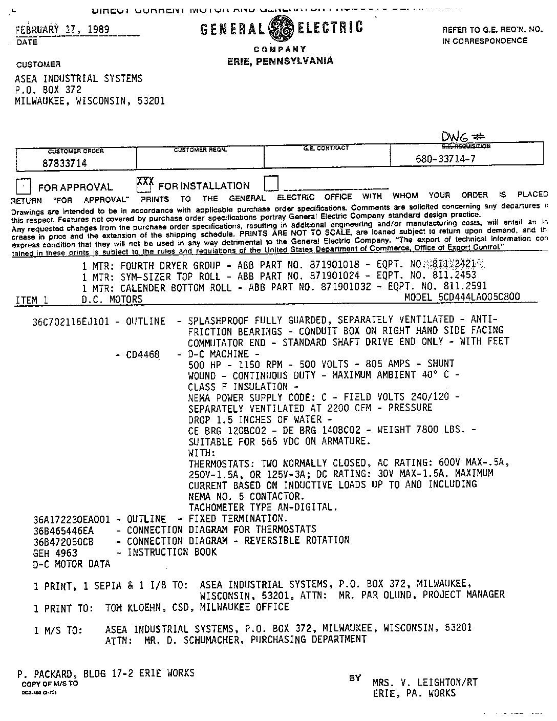 500 HP, 1150 RPM, GE, FRAME CD4468, BB, SPFG-SV, 500V (2) quantity