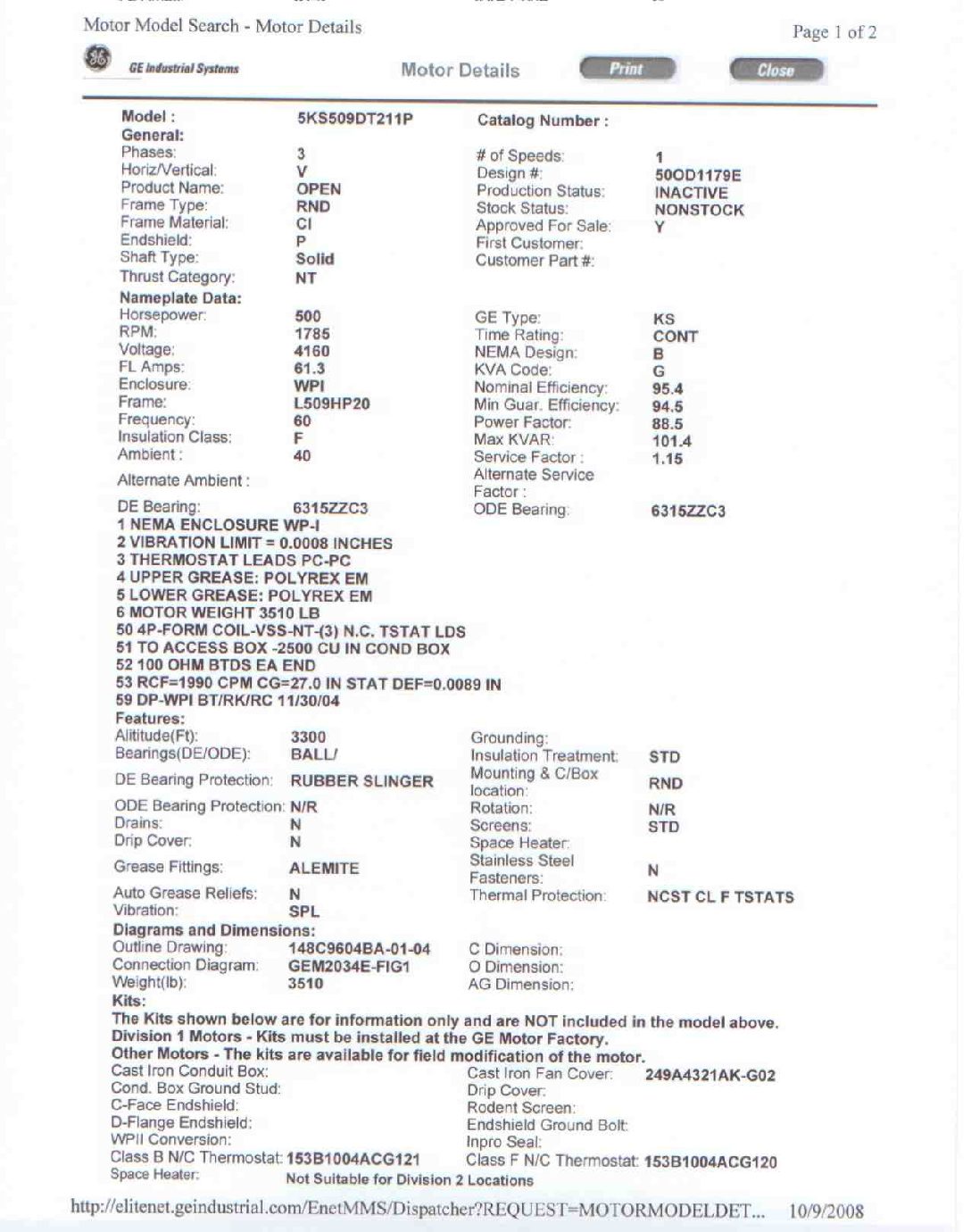 500 HP, 1800 RPM, GE, FRAME L509HP20, BBWPI, 2300/4160V