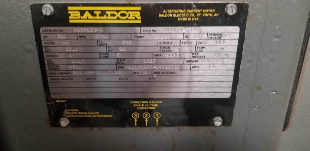 500 HP, 3600 RPM, BALDOR, FRAME 5009S, BBDP, 460 V