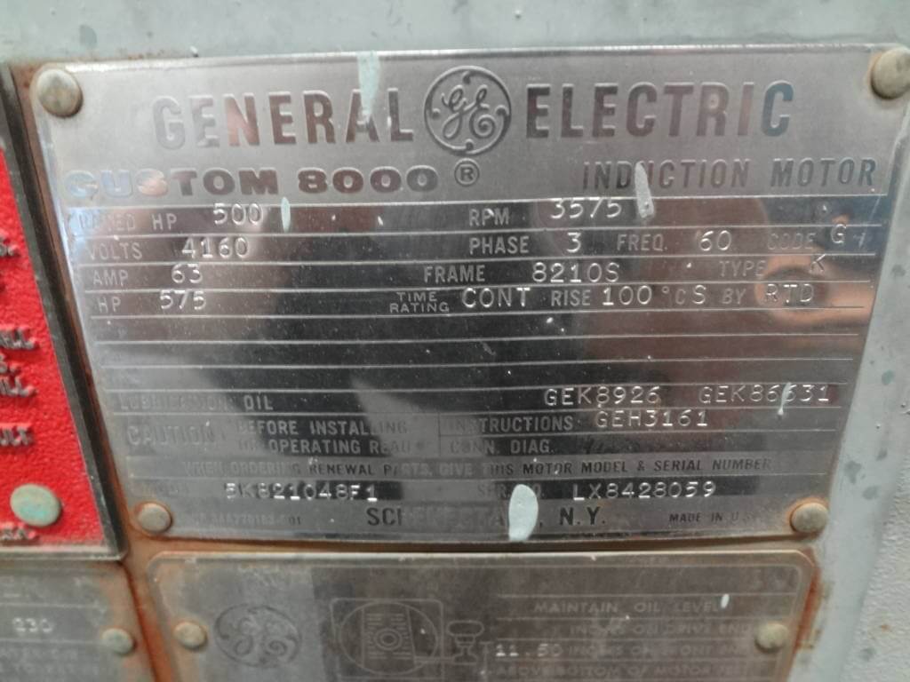 500 HP, 3600 RPM, GE, FRAME 8210S, SBTEAAC, 2300/4160V