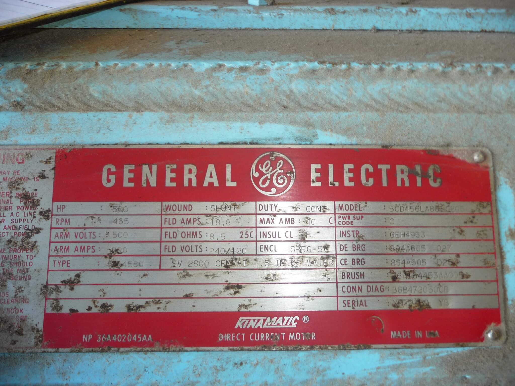500 HP, 465 RPM, GE, FRAME CD4580, BB, SPFG-SV, 500V (4)