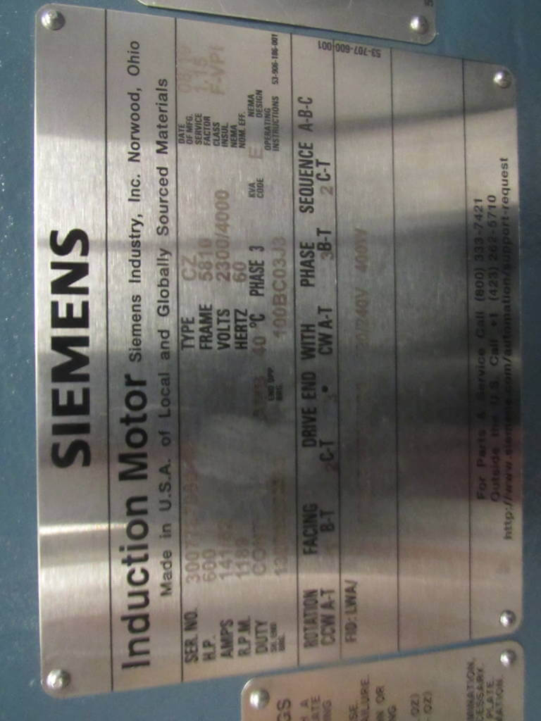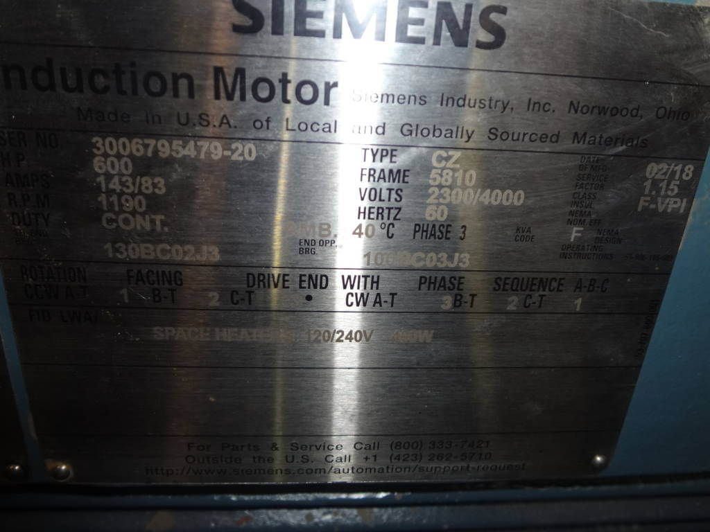 600 HP, 1200 RPM, Siemens, FRAME 5810, BBTEFC, 2300/4000V, NEW, (2)