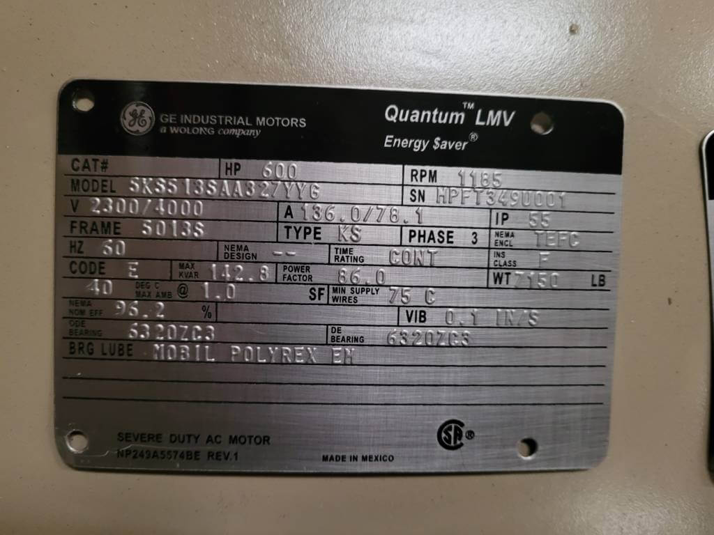 600 HP, 1200 RPM, GE, FRAME 5013S, BBTEFC, 2300/4000V, NEW, (2)