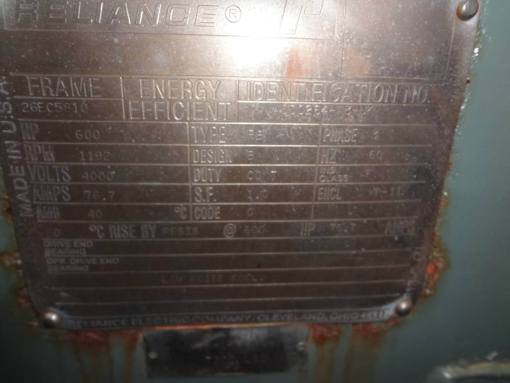 600 HP, 1200 RPM, RELIANCE, FRAME 5810, BBWPII, 2300/4000V