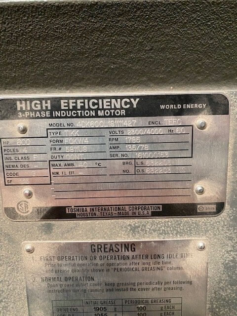 600 HP, 1800 RPM, TOSHIBA, FRAME 5811US, BBTEFC, 2300/4000V -NEW quantity