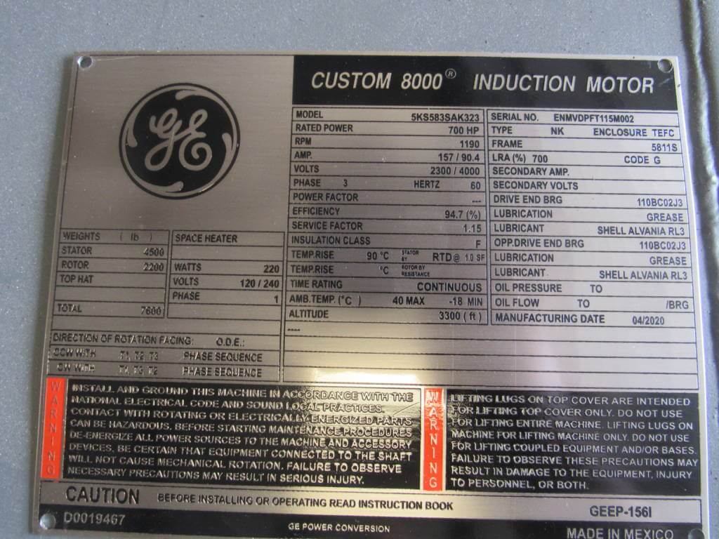 700 HP, 1200 RPM, GE, FRAME 5810/5811S, BBTEFC, 2300/4000V, NEW, (2)