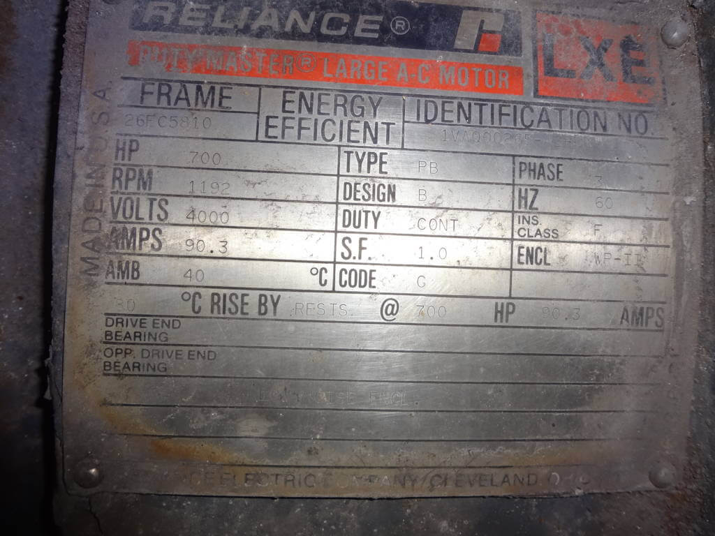 700 HP, 1200 RPM, RELIANCE, FRAME 5810, BBWPII, 2300/4000V (4) quantity