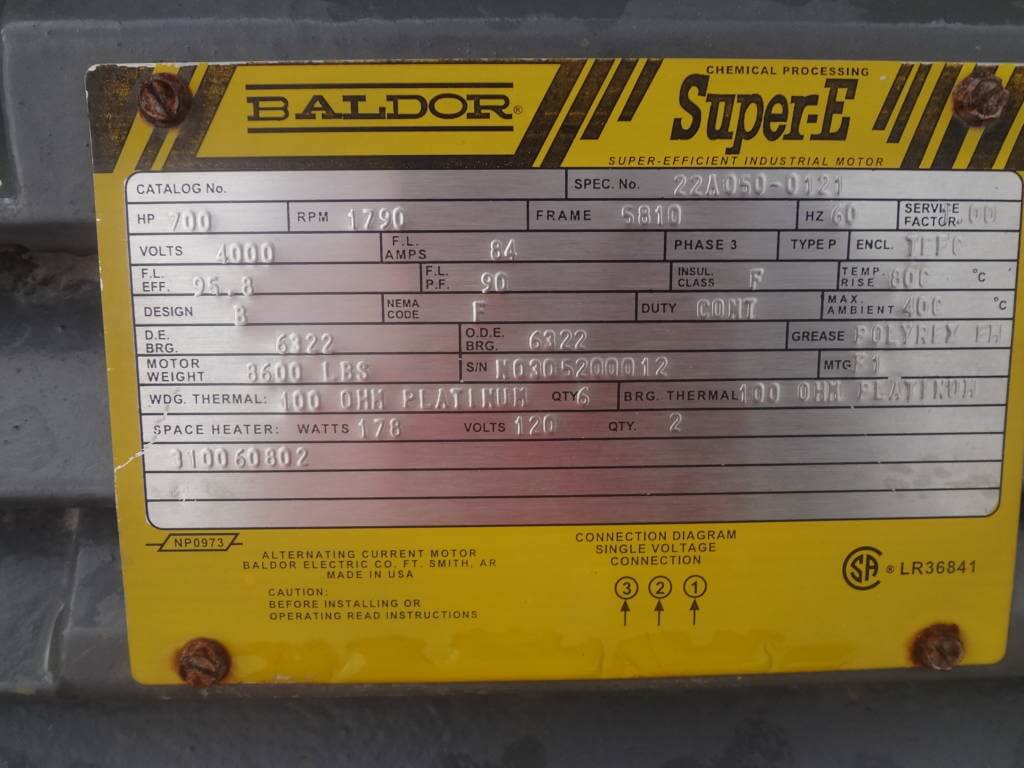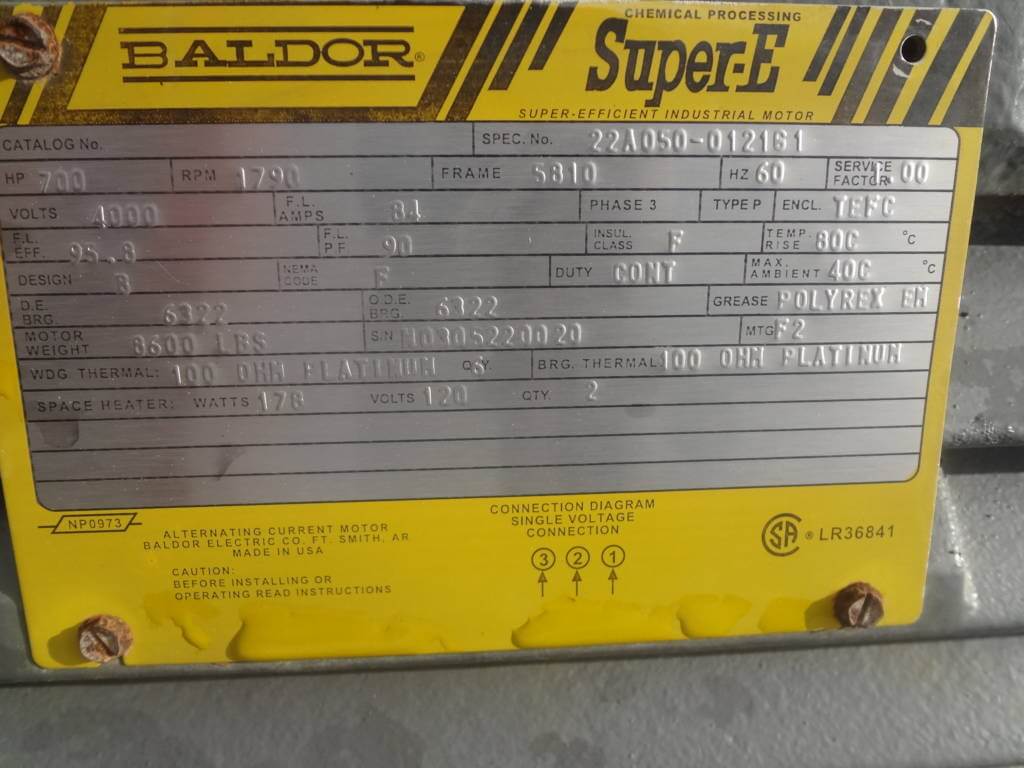 700 HP, 1800 RPM, BALDOR, FRAME 5810, BBTEFC, 2300/4000V